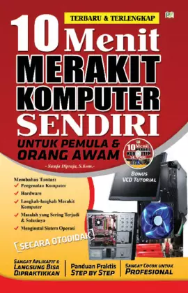 Sinopsis Buku: Buku ini memberikan panduan lengkap dan terstruktur tentang cara merakit komputer sendiri, mulai dari persiapan komponen hingga langkah-langkah pemasangan yang benar. Buku ini ditujukan bagi pemula maupun yang ingin belajar lebih dalam tentang dunia komputer dan teknologi. Di dalamnya disajikan berbagai bab yang menjelaskan secara rinci tentang komponen-komponen utama komputer seperti power supply, processor, RAM, motherboard, sound card, VGA card, harddisk, dan CD/DVD room. Selain itu, buku ini juga membahas cara menghubungkan kabel-kabel konektor motherboard, mengenal port-port yang ada, serta berbagai masalah yang sering terjadi pada komputer beserta cara mengatasinya. Terdapat pula penjelasan tentang cara menginstal sistem operasi sebagai langkah akhir dalam proses merakit komputer. Buku ini dilengkapi dengan ilustrasi dan gambar yang memudahkan pemahaman pembaca. Dengan membaca buku ini, pembaca dapat memahami prinsip kerja komputer, memilih komponen yang sesuai dengan kebutuhan dan anggaran, serta memiliki kemampuan untuk merakit dan mengupgrade komputer sendiri. Buku ini sangat bermanfaat bagi pelajar, mahasiswa, pengguna komputer, serta calon pengusaha di bidang layanan komputer.