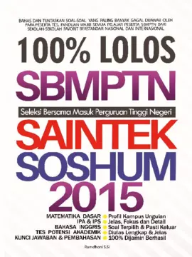 Sinopsis Buku: Buku ini merupakan kumpulan soal-soal paling sulit yang muncul dalam ujian Seleksi Bersama Masuk Perguruan Tinggi Negeri (SBMPTN) tahun 2015. Soal-soal yang terkumpul dalam buku ini merupakan soal-soal yang sering muncul dan menjadi tantangan bagi para peserta ujian. Dengan mempelajari dan memahami materi yang disajikan dalam buku ini, diharapkan para pelajar dapat meningkatkan kemampuan akademiknya, mempersiapkan diri secara lebih matang, dan memperoleh nilai terbaik dalam ujian SBMPTN. Buku ini juga memberikan informasi terkait prosedur pendaftaran, tanggal penting, dan biaya ujian SBMPTN 2015, yang merupakan salah satu upaya pemerintah untuk memberikan akses yang lebih mudah dan terjangkau bagi lulusan SMA sederajat untuk melanjutkan studi ke perguruan tinggi negeri. Dengan subsidi yang diberikan, biaya pendaftaran SBMPTN 2015 menjadi lebih terjangkau dibandingkan tahun sebelumnya. Selain itu, buku ini juga menjelaskan struktur ujian SBMPTN, termasuk Tes Potensi Akademik (TPA), Tes Bidang Studi Dasar (Matematika, Bahasa Indonesia, dan Bahasa Inggris), serta Tes Bidang Studi IPA atau IPS, tergantung pada pilihan jurusan yang diambil oleh peserta. Buku ini menjadi panduan yang bermanfaat bagi para pelajar yang ingin mempersiapkan diri secara optimal untuk menghadapi ujian SBMPTN dan berpeluang besar lulus serta diterima di perguruan tinggi negeri yang menjadi impian mereka.