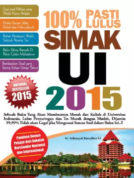 Sinopsis Buku: Buku ini merupakan panduan lengkap dan terpercaya bagi para calon mahasiswa yang ingin memasuki Universitas Indonesia (UI) melalui tes SIMAK (Saringan Masuk). Dengan menguasai seluruh soal yang terdapat dalam buku ini, para pembaca dapat memperoleh kepastian hingga 99,99% untuk lolos dalam proses seleksi masuk UI. Buku ini dirancang secara sistematis dengan disertai kunci jawaban dan pembahasan detail, sehingga memudahkan pembelajaran dan pemahaman materi. Buku ini juga mencakup informasi sejarah, lambang, serta atribut Universitas Indonesia sebagai bagian dari penjelasan tambahan untuk memperkaya wawasan pembaca. Dengan pendekatan yang terstruktur dan jelas, buku ini menjadi jawaban terbaik bagi siapa pun yang ingin meraih kesuksesan dalam proses seleksi masuk UI.