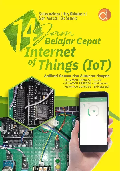 Sinopsis Buku: Buku *14 Jam Belajar Cepat Internet of Things (IoT)* merupakan panduan praktis dan komprehensif yang dirancang untuk membantu siswa dan mahasiswa dalam memahami serta menerapkan konsep Internet of Things (IoT) secara langsung melalui desain rangkaian elektronik berbasis perangkat lunak seperti Blynk, Webserver, dan ThingSpeak. Buku ini menyediakan penjelasan yang jelas dan terstruktur tentang berbagai jenis sensor dan aktuator yang umum digunakan dalam proyek IoT, seperti sensor PIR, sensor jarak, sensor suhu dan kelembapan, serta sensor gas. Setiap bab dilengkapi dengan contoh aplikasi nyata dan cara penggunaan berbasis platform Blynk dan Webserver, yang memungkinkan pembaca untuk mengamati hasilnya secara real-time melalui perangkat HP atau server. Selain itu, buku ini juga mencakup penjelasan tentang instalasi IoT dan penggunaan berbagai widget yang mendukung pengembangan aplikasi IoT yang interaktif dan mudah dipahami. Buku ini tidak hanya memberikan teori, tetapi juga memberikan pengalaman praktis yang bisa langsung diterapkan oleh pembaca dalam proyek pembelajaran atau penelitian. Dengan pendekatan yang sederhana dan terstruktur, buku ini menjadi panduan ideal bagi siapa pun yang ingin mempelajari IoT berbasis Arduino dan sensor/aktuator.