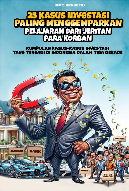 Masyarakat mengetahui bahwa melakukan investasi merupakan salah satu cara untuk bisa menghasilkan keuntungan dan mengembangkan passive income yang baik kedepannya Namun pengetahuan mengenai investasi ini tidak diimbangi dengan literasi keuangan yang baik sehingga masyarakat hanya mengetahui dampak positif dari investasi tidak dengan risiko dan kerugian yang menunggu kedepannya termasuk terjebak pada investasi bodong Kemajuan teknologi digital yang sangat pesat mengakibatkan masyarakat mendapatkan beragam informasi mengenai investasi investasi baru dengan return yang menggiurkan sehingga kerap kali masyarakat dengan cepat bergabung pada jenis investasi tersebut tanpa mempelajari terlebih dahulu risiko yang akan ada Pemerintah sudah berupaya untuk menutup ratusan investasi bodong yang ada di Indonesia dan memberikan edukasi agar terhindar Namun korban korban masih saja terus berjatuhan karena investasi bodong yang nyatanya masih menggunakan modus yang sama walaupun dengan cerita berbeda Masyarakat dapat dengan mudah terpengaruh oleh ajakan ajakan orang sekitar untuk bentuk bentuk investasi baru yang menjanjikan keuntungan besar Terkadang masyarakat juga tertarik dengan ajakan influencer influencer yang umumnya tidak mengetahui produk yang diiklankan tetapi karena mendapat bayaran maka mereka iklankan saja tanpa mengetahui dampaknya Melalui buku ini masyarakat diajak untuk mempelajari kasus kasus investasi yang paling mencengangkan yang pernah terjadi di Indonesia Tujuannya untuk membuka perspektif baru bagi masyarakat dan mengetahui bahwa terdapat ciri ciri yang serupa dari investasi yang berujung merugikan masyarakat itu sendiri