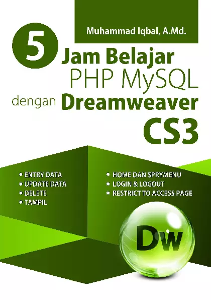 Sinopsis Buku: Buku ini merupakan panduan praktis dan sederhana untuk mempelajari pengembangan sistem informasi berbasis web menggunakan teknologi PHP, MySQL, dan Adobe Dreamweaver CS3. Dalam lima sesi belajar, pembaca akan dibimbing secara langkah demi langkah untuk memahami konsep dasar perancangan sistem informasi, menginstal dan mengkonfigurasi XAMPP, serta membangun database dan website menggunakan Dreamweaver CS3. Buku ini juga mencakup pembuatan halaman utama (home) dan menu SPRY, serta pengembangan aplikasi dasar seperti input, tampil, update, dan hapus data. Selain itu, buku ini juga menyajikan cara membuat aplikasi login dan logout yang merupakan komponen penting dalam pengembangan sistem berbasis web. Dengan pendekatan yang interaktif dan disertai ilustrasi, buku ini dirancang untuk memudahkan pembaca dalam mempraktikkan konsep-konsep yang dipelajari, baik untuk pemula maupun mereka yang ingin meningkatkan kemampuan dalam pengembangan web.