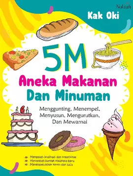 Buku ini berisi kegiatan 5 M yang terdiri atas menggunting menempel menyusun mengurutkan dan mewarnai aneka makanan dan minuman Selain anak anak senang dengan kegiatan 5 M tersebut juga ilmunya akan bertambah dengan mengenal aneka makanan dan minuman Sehingga dalam satu kegiatan selain imajinasi dan motorik halusnya terasah kosa katanya juga bertambah Selain itu diperlukan peran tenaga pendidik dan orang tua untuk membantu anak dalam berkegiatan menggunakan buku ini Juga jaga agar anak anak tetap senang saat belajar sehingga materi yang diajarkan bisa sempurna terserap Selamat beraktivitas bersama si buah hati