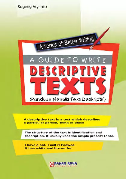 Ketika seseorang telah memahami cara menulis teks deskriptif dia akan mampu menggambarkan orang benda hewan ataupun peristiwa dengan benar dan runtut Dengan kata lain kalimat kalimat deskriptif tersebut akan membuat pembaca seolah olah menyaksikan sendiri Kemampuan tersebut tentu akan berguna kelak kamu terjun di dunia pekerjaan nyata Sayangnya buku yang mengulas tentang teks deskriptif masih jarang ditemukan Sebagian besar buku atau situs internet yang membahas tentang teks deskriptif menggunakan bahasa Inggris Hal ini bisa menyebabkan keengganan kamu untuk mempelajarinya Atas dasar tersebut penyusun memberanikan diri untuk menulis buku ini Dengan mempelajari buku ini kamu akan memahami tentang panduan menulis teks deskriptif secara mudah Buku ini menyajikan materi tersebut dengan bahasa yang mudah dipahami