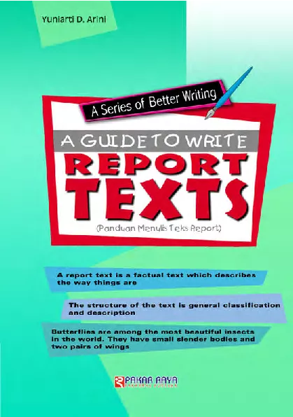 Saat mendengar kata report apa yang ada dalam pikiran kamu Apakah itu berarti laporan yang complicated dan sulit Apakah teks report membuat kamu repot Sebenarnya penulisan teks report tidaklah nbsp sulit Menulis sebuah teks report merupakan sesuatu yang menyenangkan dan bermanfaat Bagaimana tidak Sebelum menulis teks report kamu akan membaca banyak referensi yang berkaitan dengan subjek yang akan kamu tulis Hal itu tentu saja akan menambah wawasan maupun pengetahuan kamu Yang menjadi masalah kamu sering tidak mengetahui apakah teks report itu dan bagaimana cara menulisnya Untuk itulah kamu perlu mempelajari buku ini Buku ini merupakan jawaban dari ketidaktahuanmu tentang teks report Dalam buku ini dipaparkan berbagai hal yang berkaitan dengan cara penulisan sebuah teks report Setelah membaca buku ini kamu akan memahami bagaimana menulis teks report Kamu akan mengetahui hal hal yang harus kamu tulis dalam sebuah teks report Buku ini juga dilengkapi contoh penulisan teks report berdasarkan struktur teksnya Selain itu kamu juga akan mengetahui strategi menulis teks report dengan lebih baik dan mudah