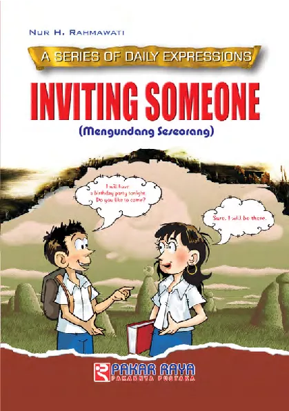 Kalian yang masih duduk di bangku SMP lebih ditekankan pada penguasaan keterampilan mendengarkan dan berbicara Ini artinya kalian harus menguasai berbagai ungkapan tindak tutur yang digunakan dalam percakapan sehari hari Sayangnya kalian tidak memiliki kesempatan banyak untuk mempelajarinya di kelas Berkaitan dengan hal tersebut buku berjudul Inviting someone ini disusun untuk membantu kalian memperdalam keterampilan berbahasa terutama mendengarkan dan berbicara Sesuai judulnya buku ini membahas berbagai ungkapan ajakan undangan bahasa Inggris resmi maupun tidak resmi Kalian juga akan menemukan contoh contoh penggunaan ungkapan ajakan undangan dalam bentuk percakapan dalam berbagai konteks situasi sehari hari Misalnya ajakan belajar bersama undangan makan malam bersama dan undangan pesta ulang tahun Selanjutnya dengan mempelajari buku ini kalian dapat pula meningkatkan keterampilan membaca dan menulis Mengapa Karena buku ini menampilkan berbagai ungkapan ajakan undangan secara tertulis sebagai materi pengembangan Penjelasan ini disertai dengan contoh contoh penggunaannya dalam teks teks tulis misalnya kartu undangan surat dan pesan pendek Dengan demikian setelah kalian memahami dan menguasai ungkapan pertukaran barang dan jasa dalam bahasa lisan kalian juga diharapkan dapat menguasainya dalam bahasa tulis