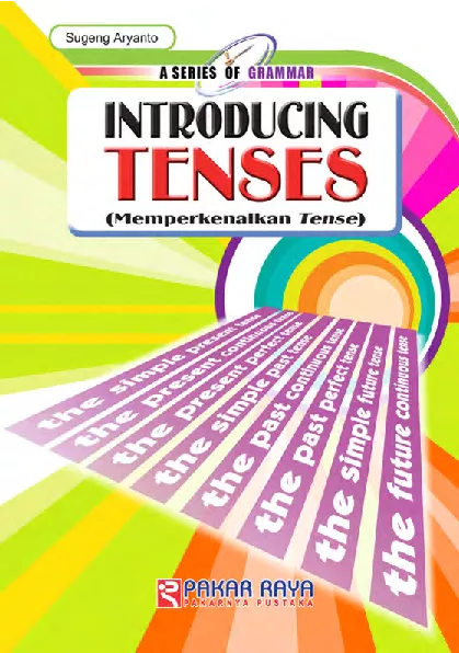 Banyak di antara kalian yang mengangap bahwa tense susah untuk dipelajari Kalian banyak menemui kesulitan dalam memahami dan menggunakan masing masing tense Karena semua kalimat dalam bahasa Inggris tidak lepas dari tense pemahaman yang tepat tentang tense merupakan hal yang harus dipelajari ketika belajar bahasa Inggris Pedoman penggunaan tense hampir selalu dapat ditemukan dalam setiap buku tentang tata bahasa grammar Jika mengalami kesulitan yang berkaitan dengan tense kalian dapat langsung mencari keterangan dari buku buku grammar tersebut Permasalahan yang sering timbul adalah kalian sulit memahami buku buku tersebut karena hanya menampilkan kumpulan rumus tense Berdasarkan hal tersebut penyusun memberanikan diri untuk menyusun buku pendamping ini yang secara lengkap membahas tentang pengertian kegunaan contoh serta pola kalimat setiap tense Buku ini juga dilengkapi dengan contoh permainan yang bisa digunakan untuk berlatih menggunakan tense Dengan demikian kalian akan terlatih menggunakan kalimat berbahasa Inggris dalam tense yang benar