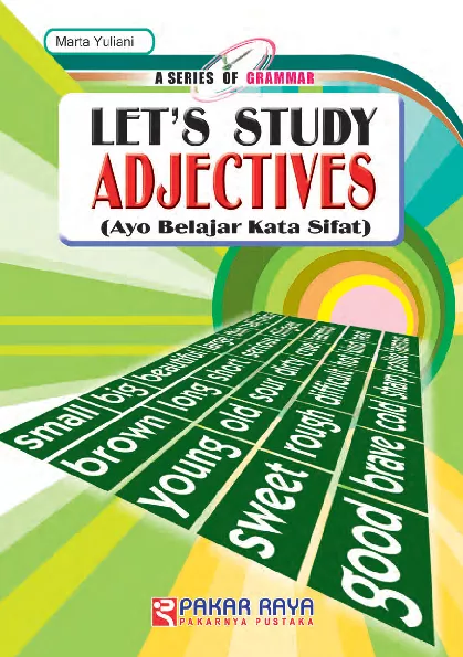 Dengan membaca buku ini kamu akan mengetahui jenis jenis adjectives dan cara pembentukannya Kamu juga akan mengetahui bahwa ada adjectives yang serupa tetapi tak sama yaitu adjectives yang artinya sama tetapi digunakan secara berbeda Tahukah kamu bahwa adjectives memiliki saudara kembar yang disebut adverbs Kamu juga akan mempelajarinya di dalam buku ini Itu semua adalah gambaran sekilas yang akan kamu dapatkan dengan membaca buku mengenai adjectives ini Masih banyak hal lain yang dapat memperkaya pengetahuanmu mengenai adjectives Memang inilah tujuan buku ini ditulis yaitu supaya kamu dapat lebih memahami adjectives Kalau kamu sudah memahami adjectives kamu akan semakin mudah memahami lagu puisi bacaan yang menggunakan banyak adjectives seperti teks descriptive narrative dan report Selain itu kamu juga akan semakin mudah menggunakan adjectives pada saat kamu menuangkan gagasan gagasanmu ke dalam berbagai macam teks Dengan demikian keterampilan berbahasa Inggrismu akan meningkat dan nilaimu pun menjadi semakin baik