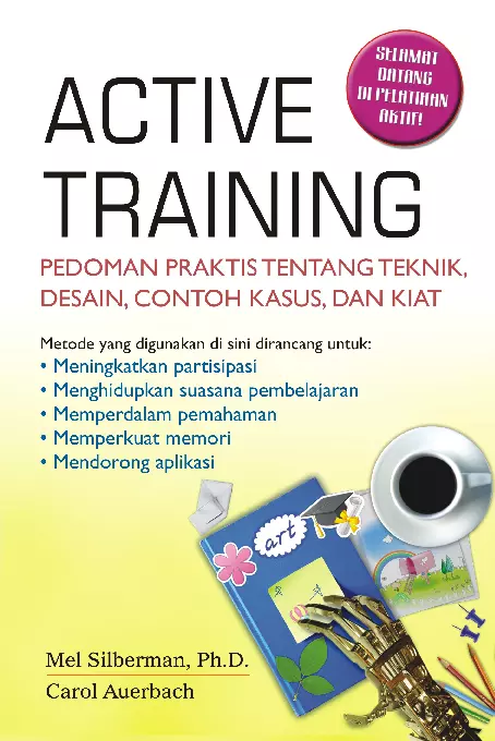 Sinopsis Buku: Buku ini merupakan edisi kedua dari *Active Training*, sebuah panduan praktis yang menyajikan teknik, desain, contoh kasus, dan kiat dalam penyelenggaraan pelatihan yang aktif dan efektif. Buku ini ditulis oleh Mel Silberman, Ph.D., dengan bantuan Carol Auerbach, dan diterjemahkan oleh M. Khozim serta disunting oleh Irfan M. Zakkie. Buku ini dirancang untuk membantu pelatih dan pengelola pelatihan dalam merancang, menyampaikan, dan mengevaluasi program pelatihan yang relevan dan berdampak. Buku ini menjelaskan tiga fase utama dari pelatihan, yaitu fase depan (penilaian kebutuhan dan penetapan sasaran), fase tengah (perencanaan dan penyampaian), serta fase belakang (penerapan, dukungan kinerja, dan evaluasi). Selain itu, buku ini mendorong pendekatan aktif dalam pelatihan, yang mencakup penggunaan berbagai metode, desain, dan contoh kasus untuk meningkatkan pengalaman belajar peserta. Beberapa topik pelatihan yang disebutkan dalam buku ini mencakup pelatihan ketegasan perbankan, penulisan bisnis, pengembangan karir, manajemen perubahan, perawatan anak, bimbingan dan penyuluhan, keterampilan komunikasi, pelatihan komputer, manajemen konflik, pemikiran kreatif, keragaman budaya, layanan pelanggan, pengujian obat, pendidikan dan terapi keluarga, dinamika kelompok, asuransi, keterampilan wawancara, kepemimpinan, pelatihan manajemen, pengukuran dan pengujian, motivasi, penilaian kinerja, pemecahan masalah, manajemen proyek, pembelian, real estate, pelecehan seksual, manajemen stres, pengajaran, pengembangan tim, manajemen waktu, kualitas total, dan pelatihan untuk pelatih. Buku ini cocok bagi para pelatih, pengelola pelatihan, dan profesional yang ingin meningkatkan kualitas program pelatihan mereka, serta memberikan kebebasan dan kreativitas dalam merancang pelatihan yang lebih relevan dan inovatif.