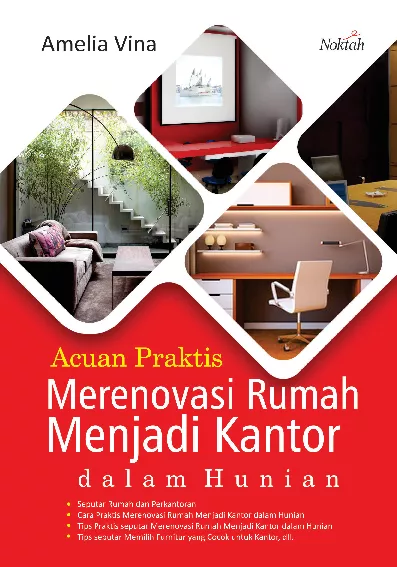 Terbatasnya lahan untuk dijadikan rumah maupun kantor serta mahalnya sewa bangunan membuat banyak orang harus memutar otak untuk menyiasatinya Akhirnya kebanyakan orang pun merenovasi rumah menjadi kantor Dengan begitu biaya yang dikeluarkan pun bisa diminimalkan sekaligus untuk investasi di masa depan Dalam hal ini jika Anda tidak membutuhkan sebuah tempat untuk dijadikan kantor tetapi Anda mempunyai rumah yang tidak dimanfaatkan dengan baik maka tidak ada salahnya bila Anda merenovasinya menjadi sebuah kantor yang baik dan menyewakannya kepada orang lain Selain memperoleh uang sewa rumah pun terawat dengan baik Meskipun begitu merenovasi rumah menjadi kantor bukanlah hal mudah Dibutuhkan keahlian khusus untuk mewujudkannya baik dari segi desain bangunan ruangan bentuk maupun kondisi bangunan Nah untuk tujuan itulah buku ini hadir Selain memberikan acuan praktis mendesain rumah menjadi kantor buku ini juga dilengkapi dengan estimasi biaya yang harus Anda keluarkan Dengan demikian Anda akan lebih mudah dalam mendesain dan menyesuaikan budget yang ada dengan kebutuhan