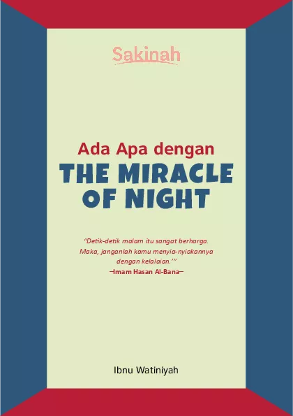 Dalam dunia spiritual malam adalah satu saat yang sangat indah dan penuh berkah Sungguh bangun di waktu malam lebih berat yakni lebih mantap persesuaiannya dengan kalbu sehingga dapat melahirkan kekhusyukan dan kesyahduan yang lebih besar dibandingkan di siang hari Bacaan di waktu itu lebih berkesan serta lebih mudah untuk dipahami dan dihayati Itulah mengapa mereka yang menghidupkan malam dengan beribadah memiliki kekuatan spiritual yang dahsyat Itulah yang terjadi pada generasi emas kaum Muslimin Mereka benar benar menjadikan malam sebagai wahana untuk dekat dengan Allah