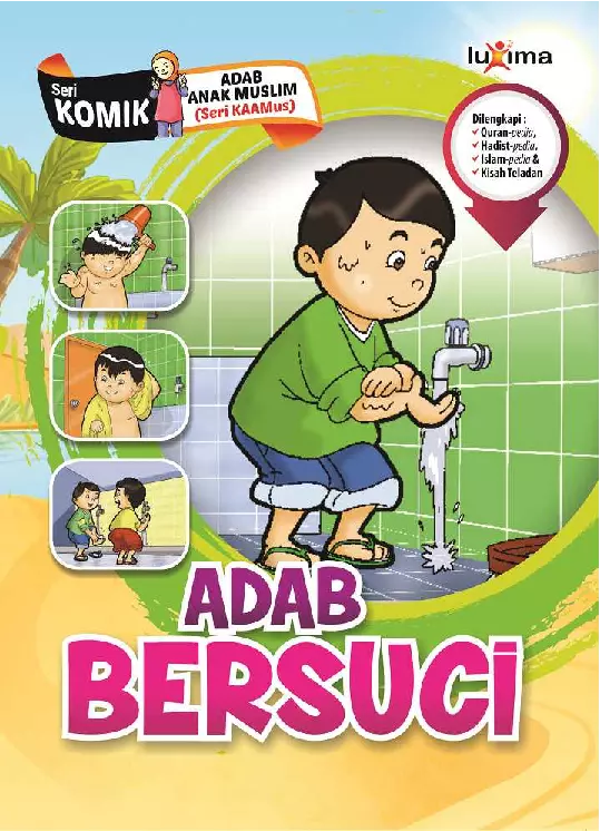 Agama Islam sebagai agama yang sempurna telah mengajarkan dan memberikan panduan dalam bersikap di kehidupan sehari hari melalui adab adabnya Sudah seharusnya kita mulai mengenalkan dan menanamkan adab adab tersebut sejak dini kepada anak anak muslim agar kelak menjadi pribadi pribadi yang bersikap terpuji Buku Adab Bersuci merupakan 1 dari 12 judul buku Seri Komik Adab Anak Muslim yang akan memberikan penjelasan tentang adab adab sebagai anak muslim baik kepada diri sendiri maupun kepada orang lain Buku ini bukan hanya harus dibaca tetapi juga patut untuk diamalkan adab adab nya dalam kehidupan sehari hari Buku ini menjadi menarik dan sangat diperlukan bagi anak anak muslim Selain kemasan yang menarik dengan pewarnaan pada seluruh ilustrasi buku ini juga dilengkapi dengan materi Quran pedia Hadits pedia Islam pedia dan kisah teladan