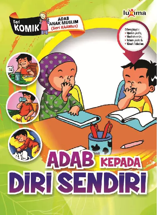 Agama Islam sebagai agama yang sempurna telah mengajarkan dan memberikan panduan dalam bersikap di kehidupan sehari hari melalui adab adabnya Sudah seharusnya kita mulai mengenalkan dan menanamkan adab adab tersebut sejak dini kepada anak anak muslim agar kelak menjadi pribadi pribadi yang bersikap terpuji Buku Adab Kepada Diri Sendiri merupakan 1 dari 12 judul buku Seri Komik Adab Anak Muslim yang akan memberikan penjelasan tentang adab adab sebagai anak muslim baik kepada diri sendiri maupun kepada orang lain Buku ini bukan hanya harus dibaca tetapi juga patut untuk diamalkan adab adab nya dalam kehidupan sehari hari Buku ini menjadi menarik dan sangat diperlukan bagi anak anak muslim Selain kemasan yang menarik dengan pewarnaan pada seluruh ilustrasi buku ini juga dilengkapi dengan materi Quran pedia Hadits pedia Islam pedia dan kisah teladan