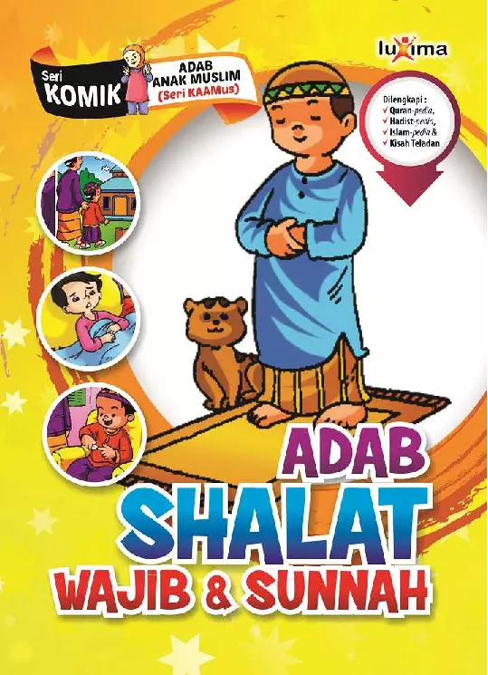 Agama Islam sebagai agama yang sempurna telah mengajarkan dan memberikan panduan dalam bersikap di kehidupan sehari hari melalui adab adabnya Sudah seharusnya kita mulai mengenalkan dan menanamkan adab adab tersebut sejak dini kepada anak anak muslim agar kelak menjadi pribadi pribadi yang bersikap terpuji Buku Adab Shalat Wajib dan Sunnah merupakan 1 dari 12 judul buku Seri Komik Adab Anak Muslim yang akan memberikan penjelasan tentang adab adab sebagai anak muslim baik kepada diri sendiri maupun kepada orang lain Buku ini bukan hanya harus dibaca tetapi juga patut untuk diamalkan adab adab nya dalam kehidupan sehari hari Buku ini menjadi menarik dan sangat diperlukan bagi anak anak muslim Selain kemasan yang menarik dengan pewarnaan pada seluruh ilustrasi buku ini juga dilengkapi dengan materi Quran pedia Hadits pedia Islam pedia dan kisah teladan