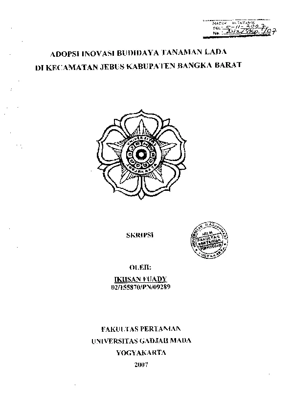 Adopsi Inovasi Budidaya Tanaman Lada Di Kecamatan Jebus Kabupaten Bangka Barat Ikhsan Fuady Fakultas Pertanian UGM Konten Lokal Konten Lokal 50995