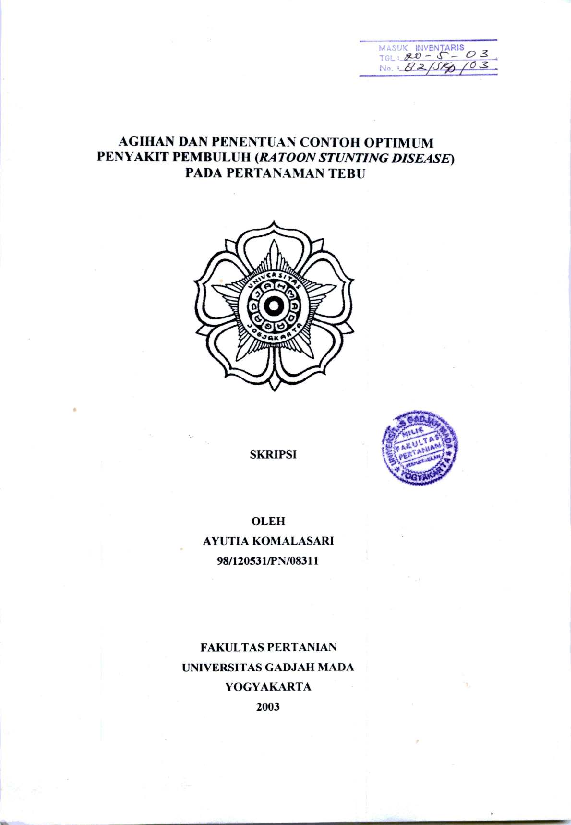 Aghan Dan Penentuan Contoh Optimum Penyakit Pembuluh (Ratoon Stunting Disease) Pada Pertanaman Tebu Ayutia Komalasari Fakultas Pertanian UGM Konten Lokal Konten Lokal 48312