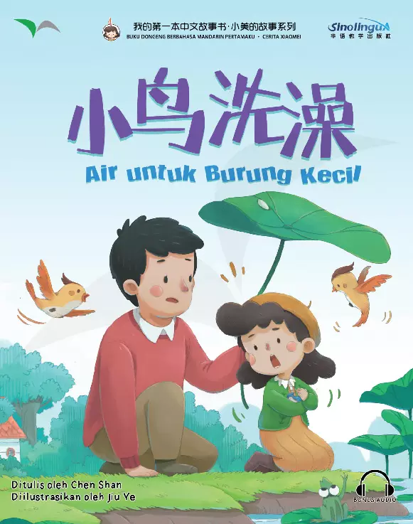 Xiaomei senang sekali melihat burung burung terbang dan bermain di kolam halaman belakang Namun sepertinya kolamnya terlalu besar untuk burung burung kecil Coba tebak apa yang Xiaomei lakukan