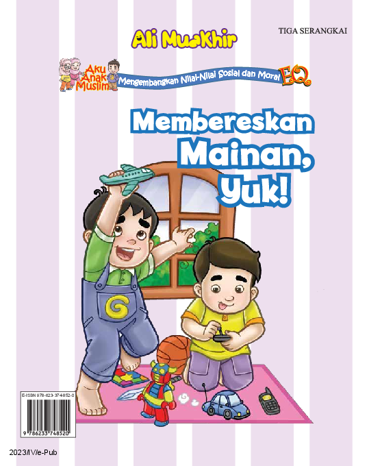 Menjadi anak saleh tak sekadar rajin beribadah Ada beberapa sifat lain yang harus dimiliki anak saleh Sifat sifat ini antara lain pemberani jujur disiplin dan sabar Sifat sifat ini yang akan melengkapi kepribadian seorang muslim agar bisa menjadi rahmat bagi seluruh alam Selain itu seorang muslim harus rapi Sifat rapi berarti menyimpan barang barang di tempatnya Di dalamnya termasuk merapikan kembali mainan Sifat rapi sangat penting agar lingkungan selalu terlihat bersih Yuk baca cerita Gaga tentang bersikap rapi dalam buku ini