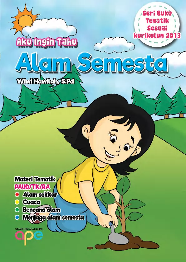 Sinopsis Buku Aku Ingin Tahu: Alam Semesta Buku ini merupakan bagian dari Seri Aku Ingin Tahu yang dirancang khusus untuk anak usia dini, dengan tujuan meningkatkan wawasan dan mengembangkan bakat melalui pembelajaran yang menyenangkan. Buku ini membahas topik tentang *Alam Semesta*, yang merupakan ciptaan Tuhan yang begitu indah dan perlu dijaga kelestariannya. Dalam buku ini, anak-anak akan mempelajari tentang berbagai aspek alam semesta, seperti langit, bumi, udara, api, hujan, petir, banjir, dan letusan gunung, serta dampak-dampaknya terhadap kehidupan sehari-hari. Selain itu, buku ini juga mengajarkan pentingnya rasa syukur atas nikmat yang diberikan oleh Tuhan, melalui aktivitas bernyanyi bersama dan mewarnai gambar. Pembelajaran dilakukan dengan bahasa yang sederhana, lugas, dan mudah dipahami, disertai ilustrasi yang menarik untuk memperkaya pemahaman anak. Buku ini dilengkapi dengan aktivitas kreatif, seperti mewarnai dan bernyanyi, yang memberikan kesempatan bagi anak untuk belajar sambil bermain. Dengan pendekatan yang interaktif dan edukatif, buku ini menjadi sarana efektif untuk mengenalkan konsep-konsep ilmu pengetahuan alam kepada anak-anak sejak dini.