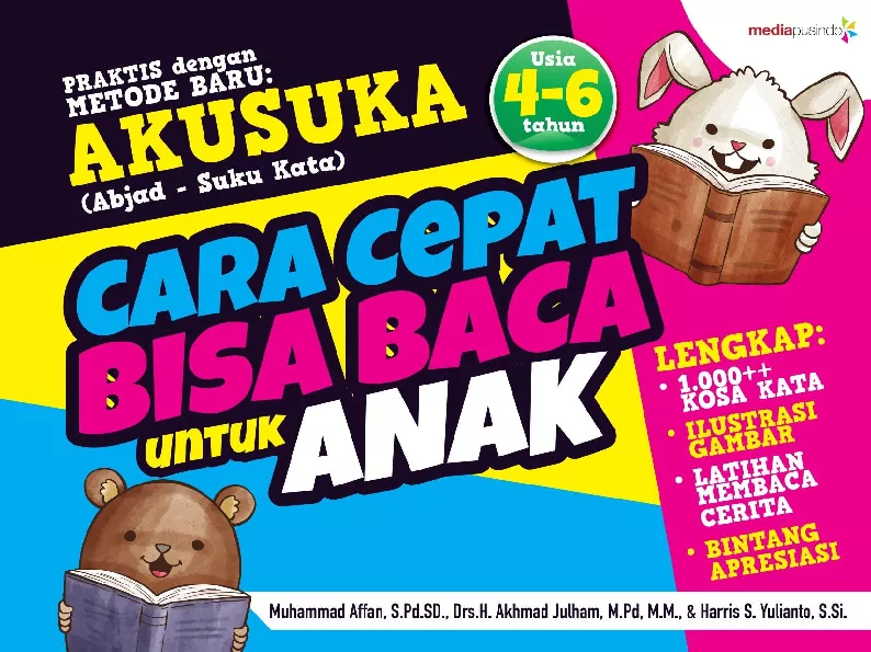 Mengajarkan anak untuk membaca merupakan hal yang sulit dilakukan oleh orang tua kita sebagai orangtua harus dan wajib sekali menjadi teman sekaligus sahabat bagi si anak ketika mengajarkannya untuk membaca Dengan hadirnya buku ini diharapkan untuk membantu orangtua yang sedang mengajarkan anaknya membaca dengan lebih mudah dan tepat hingga si anak siap untuk masuk ke sekolah nantinya