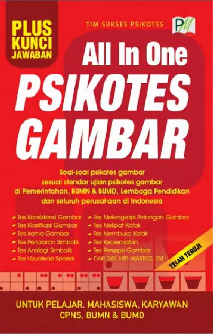 Sinopsis Buku: Buku ini merupakan panduan lengkap dan terstruktur untuk memahami serta mempersiapkan diri menghadapi berbagai jenis tes psikotes gambar yang umum digunakan dalam seleksi akademik, perekrutan pegawai negeri sipil (CPNS), BUMN, perusahaan swasta, maupun proses promosi jabatan. Buku ini mencakup berbagai macam tes psikotes gambar, seperti Tes Konsistensi Gambar, Tes Klasifikasi Gambar, Tes Irama Gambar, Tes Penalaran Simbolik, Tes Analogi Simbolik, Tes Visualisasi Spasial, Tes Melengkapi Potongan Gambar, Tes Melipat Kotak, Tes Membuka Kotak, Tes Kecermatan, Tes Persepsi Gambar, serta Tes-Tes psikologis seperti DAP, DAT, HTP, Warteg, dan TAT. Selain penjelasan tentang masing-masing jenis tes, buku ini juga dilengkapi dengan contoh soal dan kunci jawaban, sehingga membantu pembaca untuk memahami pola soal, meningkatkan kemampuan, dan mempersiapkan diri secara optimal. Buku ini sangat cocok sebagai referensi bagi mahasiswa, calon pegawai negeri, karyawan, serta siapa saja yang ingin meningkatkan kemampuan psikotes gambar. Dengan latihan yang terarah dan komprehensif, buku ini menjadi bekal yang sangat berharga untuk sukses dalam ujian psikotes gambar.