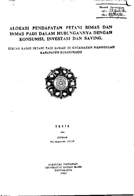 Alokasi Pendapatan Petani Bimas Dan Inmas Padi Dalam Hubungannya Dengan Konsumsi, Investasi Dan Saving. Sihman Fakultas Pertanian UGM Konten Lokal Konten Lokal 31389