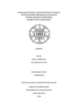 Alokasi Pengeluaran Rumah Tangga Untuk Konsumsi Bahan Pangan Di Kelurahan Kebumen Kabupaten Kebumen Nita Astriana Fakultas Pertanian UGM Konten Lokal Konten Lokal 31265