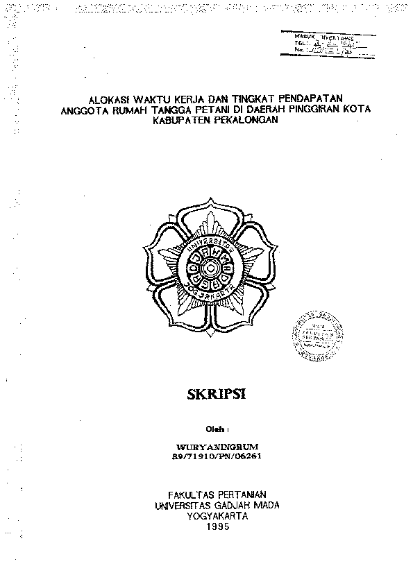 ALOKASI WAKTU KERJA DAN TINGKAT PENDAPATAN ANGGOTA RUMAH TANGGA PETANI DI DAERAH PINGGIRAN KOTA KABUPATEN PEKALONGAN Wuryaningrum Fakultas Pertanian UGM Konten Lokal Konten Lokal 50980