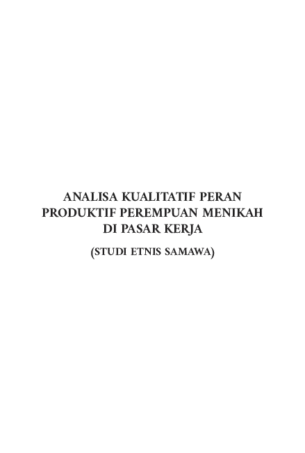 Buku ini ingin menjelaskan peranan perempuan menikah etnis Samawa dalam pasar kerja sebagai peningkatan ekonomi Masyarakat modern dituntut untuk memenuhi kebutuhan hidup mereka Hal ini bisa dilihat dari berbagai alasan perempuan setelah menikah untuk ikut dalam pasar kerja