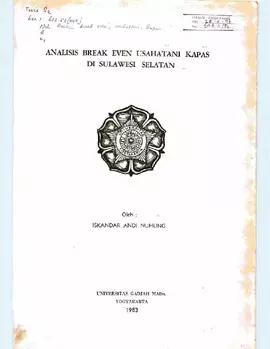 Analisi Break Even Usahatani Kapas Di Sulawesi Selatan Iskandar Andi Nuhung Fakultas Pertanian UGM Konten Lokal Konten Lokal 31075
