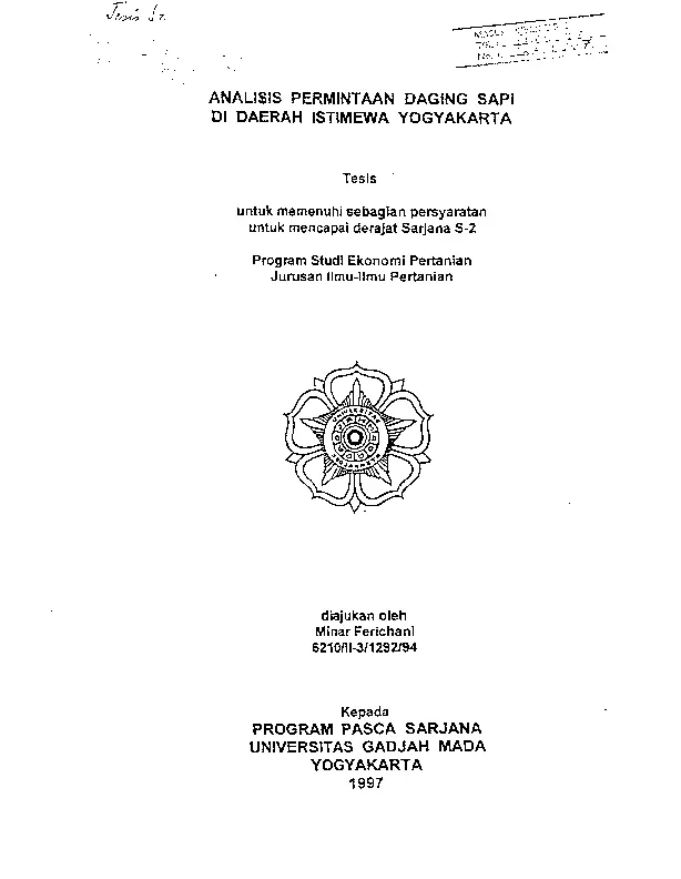 Analisi Permintaan Daging Sapi Di Daerah Istimewa Yogyakarta Minar Ferichani Fakultas Pertanian UGM Konten Lokal Konten Lokal 31125
