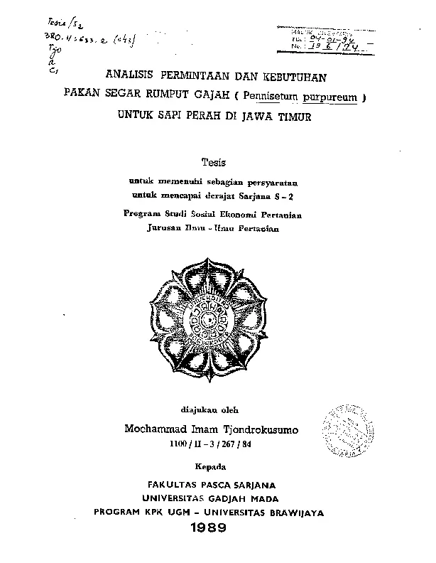 Analisi Permintaan Dan Kebutuhan Pakan Segar Rumput (Pannisetum Purpureum) Untuk Sapi Perah Di Jawa Timur Mochammad Imam Tjondrokusumo Fakultas Pertanian UGM Konten Lokal Konten Lokal 31089