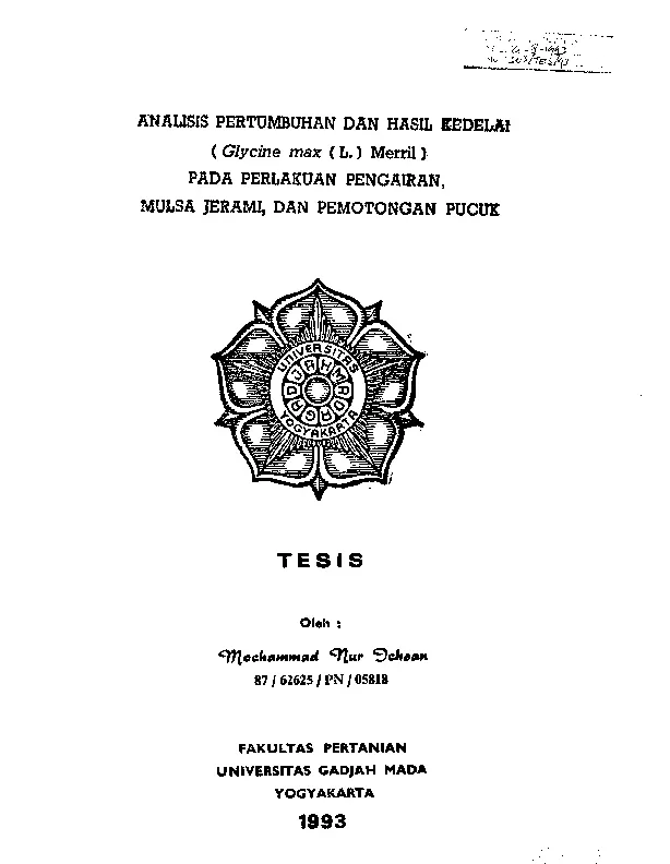 Analisi Pertumbuhan Dan Hasil Kedelai (Glycine Max (L.) Merril) Pada Perlakuan Pengairan, Mulsa Jerami, Dan Pemotongan Pucuk Mochammad Nur Jchoan Fakultas Pertanian UGM Konten Lokal Konten Lokal 31412