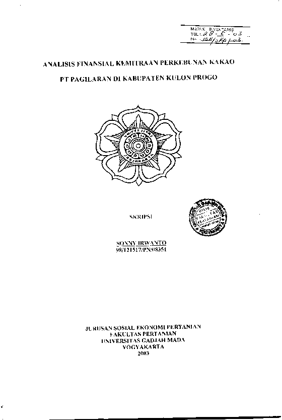 Analisis Finansial Kemltraan Perkebunan KakaoPt Pagilaran Di Kabupaten Kulon Progo Sonny Irwanto Fakultas Pertanian UGM Konten Lokal Konten Lokal 50981