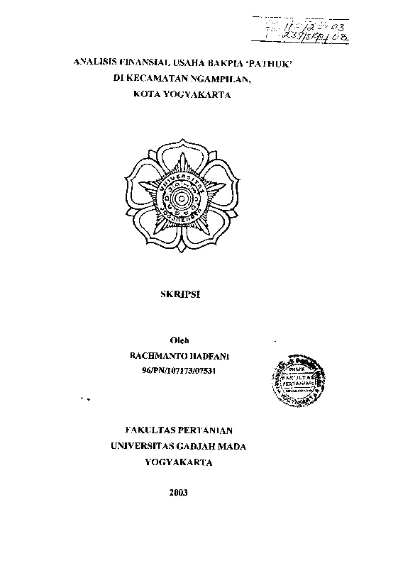 Analisis Finansial Usaha Bakpia ''Pathuk''Di Kecamatan Ngampilan,Kota Yogyakarta Rachmanto Hadfani Fakultas Pertanian UGM Konten Lokal Konten Lokal 50992