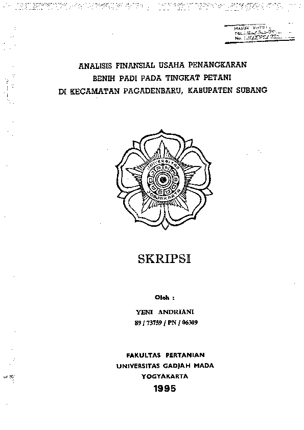 ANALISIS FINANSIAL USAHA PENANGKARAN BENIH PADI PADA TINGKAT PETANI DI KECAMATAN PAGADENBARU, KABUPATEN SUBANG Yeni Andriani Fakultas Pertanian UGM Konten Lokal Konten Lokal 50979