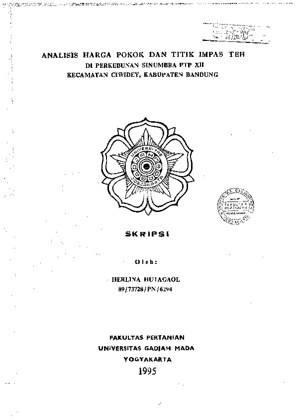 ANALISIS HARGA POKOK DAN TITIK IMPAS TEH DI PERKEBUNAN SINUMBRA PTP XII KECAMATAN CIWIDEY, KABUPATEN BANDUNG Herlina Hutagaol Fakultas Pertanian UGM Konten Lokal Konten Lokal 51007