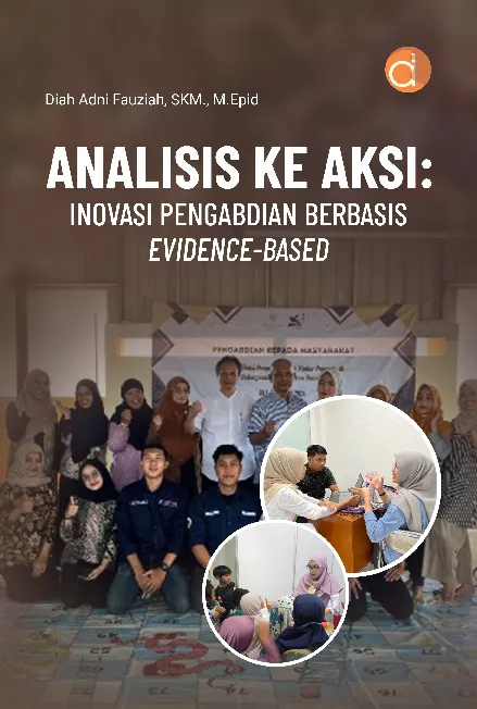 Buku kategori kesehatan masyarakat berjudul Analisis ke Aksi Inovasi Pengabdian Berbasis Evidence Based merupakan karya Diah Adni Fauziah Buku ini merupakan dokumentasi kegiatan pengabdian kepada masyarakat yang telah dilaksanakan dengan pendekatan inovatif dan sistematis melalui serangkaian langkah yang mencakup analisis situasi global dan lokal penentuan prioritas masalah identifikasi alternatif pemecahan masalah hingga pelaksanaan intervensi yang tepat sasaran Setiap kegiatan yang disajikan dalam buku ini menggunakan pendekatan partisipatif dan berbasis data diharapkan dapat menjadi inspirasi sekaligus referensi bagi para penggiat pengabdian masyarakat lainnya baik di kalangan akademisi praktisi maupun pihak yang peduli terhadap pembangunan masyarakat yang berkelanjutan