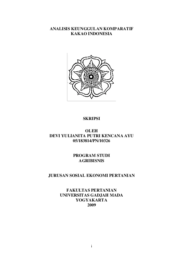 Analisis Keunggulan Komparatif Kakao Indonesia Devi Yulianita Putri Kencana Ayu Fakultas Pertanian UGM Konten Lokal Konten Lokal 31186