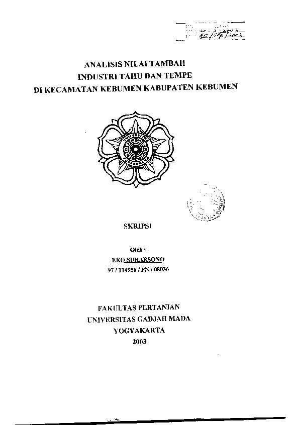 Analisis Nilai Tambah Industri Tahu Dan Tempe Di Kecamatan Kabupaten Kebumen Eko Suharsono Fakultas Pertanian UGM Konten Lokal Konten Lokal 48337