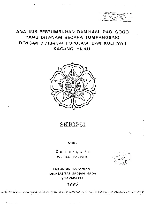 ANALISIS PERTUMBUHAN DAN HASIL PAD! GOGO YANG DITANANI SECARA TUSVIPANGSARI DENGAN BERBAGAI POPULASI DAN KULTIVAR KACANG HIJAU Suharyadi Fakultas Pertanian UGM Konten Lokal Konten Lokal 50991