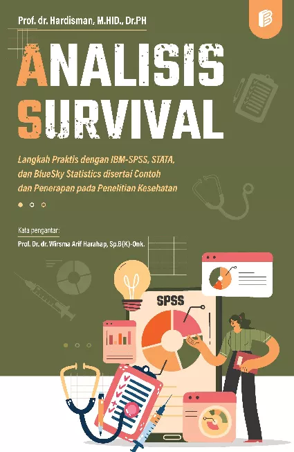 Analisis survival analisis kesintasan merupakan analisis ketahanan suatu kasus terhadap kematian atau kekambuhan berdasarkan perjalanan waktunya berdasarkan berbagai risiko Analisis ini dapat juga menilai dari sisi positif seperti kesembuhan suatu penyakit Melalui analisis survival juga dapat membandingkan beberapa kelompok pada suatu variabel sehingga dapat diketahui kategori atau kelompok mana yang lebih rentan ketahanannya Secara metodologis terdapat tiga metode analisis utama dalam analisis survival yaitu metode tabel kehidupan life table Kaplan Meier dan regresi Cox Metode regresi Cox merupakan salah satu bentuk analisis multivariat untuk melihat besaran efek dari variabel atau prediktor yang diteliti terhadap nilai survival sehingga dapat diketahui besaran efek masing masing prediktor dan diketahui variabel yang menjadi prediktor utama Pembahasan dalam buku ini juga mencakup tiga program komputer software yang dapat digunakan dalam melakukan analisis survival yaitu IBM SPSS STATA dan BlueSky Statistics Open Source versi 7 series Program SPSS dan STATA merupakan program statistik utama yang dikenal luas oleh peneliti dan mahasiswa dengan biaya lisensi cukup mahal sedangkan program BlueSky Statistics Open Source bisa didapatkan secara gratis dan digunakan secara bebas Ketiga program ini mempunyai kelebihan masing masing dan analisis ketiga program ini menunjukkan hasil yang sama dengan beberapa kelebihan masing masingnya