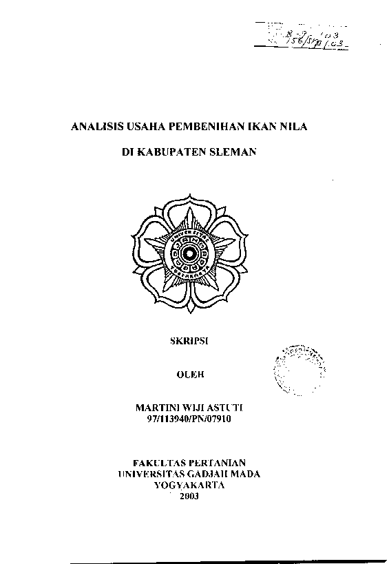 Analisis Usaha Pembenihan Ikan Nila Di Kabupaten Sleman Martini Wiji Astuti Fakultas Pertanian UGM Konten Lokal Konten Lokal 48442