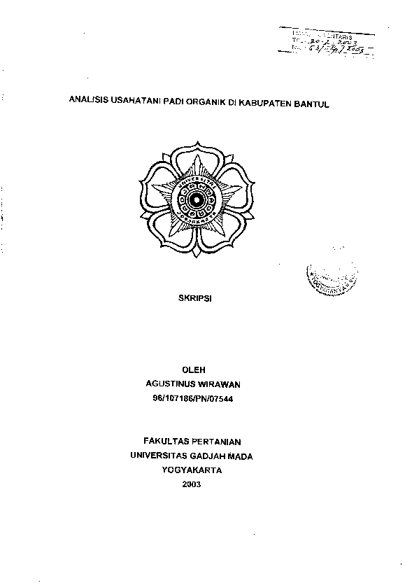 Analisis Usaha Tani Padi Organik Di Kabupaten Bantul Agustinus Wirawan Fakultas Pertanian UGM Konten Lokal Konten Lokal 48273