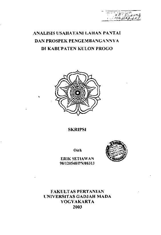Analisis Usahatani Lahan Pantai Dan Prospek Pengembangannya Di Kabupaten Kulon Progo Erik Setiawan Fakultas Pertanian UGM Konten Lokal Konten Lokal 48346