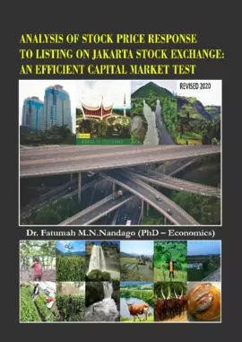 Analysis of Stock Price Response to Listing on Jakarta Stock Exchange An Efficient Market Test 2019 is a Revised Edition of a Masters Degree Thesis of the author that she wrote while pursuing her Master of Science in Business Management MSc Degree at the Faculty of Economics Gadjah Mada University within the period 1994 1996 While the Thesis analyzed how stock prices of firms listed within the period 1993 1995 on the Jakarta Stock Exchange fluctuated immediately after their IPO for new listings and prior to and after additional listing for additional share listings the objective underlying the research as specifically stated in chapter one was to identify the state of efficiency at that time of the vibrant stock exchange and a global financial center By examining the stock price behavior or the return performance of the 58 firms that did listing on the stock exchange within the period of study the researcher was able to deduce that Jakarta Stock Exchange was efficient in the semi strong form of the Efficient Market Hypothesis This is explicitly presented in Chapters three four and five respectively presenting the Theoretical framework of the research the Research methodology and Conclusions and recommendations The motivation to write and therefore have this revised edition of the book published was due to the numerous institutional economic technological and business operational changes that have taken place in the wider environment within which the stock exchange operates Indeed these changes have had significant impacts on the state of operation of the bourse the changes that could have culminated into the change of its name from Jakarta Stock Exchange to Indonesian Stock Exchange