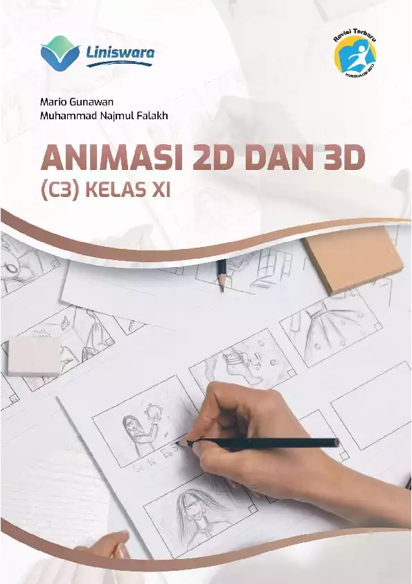 Buku Animasi 2D dan 3D C3 Kelas XI telah disesuaikan dengan Kompetensi Inti dan Kompetensi Dasar KI KD pada Kurikulum 2013 Revisi Terbaru Buku ini dibuat khusus untuk siswa Sekolah Menengah Kejuruan Madrasah Aliyah Kejuruan SMK MAK kelas XI Bidang Keahlian Teknologi Informasi dan Komunikasi dengan Program Keahlian Teknik Komputer dan Informatika pada Kompetensi Keahlian Multimedia Pada setiap bab tersedia peta konsep dan ilustrasi gambar yang akan memudahkan siswa maupun guru untuk lebih memahami isi materi Materi disusun dengan runtut dan diakhiri dengan soal penunjang pemahaman siswa Soal disajikan dalam bentuk pilihan ganda esai HOTS tugas kelompok mandiri dan tugas praktik untuk menjamin tercapainya tujuan pembelajaran