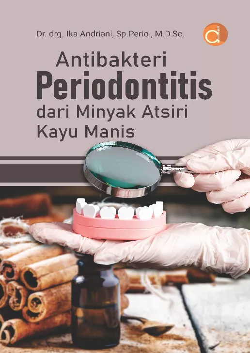 Penyakit periodontal adalah inflamasi menetap pada jaringan pendukung gigi akibat inflamasi yang disebabkan bakteri periodontal Penyakit periodontal apabila tidak dirawat dengan baik maka akan menyebabkan gigi goyang dan terlepas spontan dan mempengaruhi kondisi tubuh misalnya memperparah penyakit Diabetes Melitus dan lainnya Bakteri Aggregatibacter actinomycetemcomitans dan Porphyromonas gingivalis merupakan salah satu bakteri periodontal yang berkolonisasi pada plak gigi yang menjadi penyebab utama penyakit periodontal Perawatan dan pengobatan dengan aplikasi antibakteri dapat membantu dalam proses penyembuhan penyakit periodontal Obat kumur kimiawi memiliki efek samping dalam mulut sehingga penulis mencari alternatif obat herbal yang mudah diperoleh di sekitar lingkungan Kayu manis Cinnamomum burmannii berpotensi menjadi alternatif antibakteri alami karena kandungan senyawa aktif sinamaldehid dan eugenol yang bersifat antibakteri Berikut Daftar Isi Buku Kedokteran Gigi berjudul Buku Antibakteri Periodontitis dari Minyak Atsiri Kayu Manis diantaranya Hierarki Maslow Konsep Sehat Sakit Konsep Dasar Manusia Pemenuhan Kebutuhan Dasar Manusia Konsep Diri Konsep Stress Dan Adaptasi Kehilangan Kematian Dan Berduka