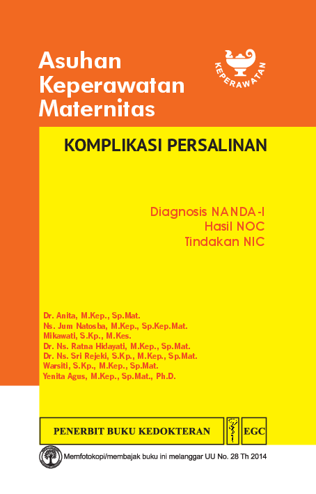 Buku Komplikasi Persalinan ini mencakup pembahasan yang lengkap terkait uraian singkat tentang gangguan dampak gangguan terhadap kehamilan pencegahan dan pengendalian gangguan hingga tanda dan gejala yang harus diwaspadai Buku ini dilengkapi rencana asuhan keperawatan dari pengkajian fisik riwayat kesehatan pemeriksaan laboratorium dan diagnostik serta asuhan keperawatan Asuhan keperawatan yang disajikan menggunakan diagnosis NANDA I hasil NOC dan tindakan NIC yang dikemas dalam bentuk tabel sehingga memudahkan pembaca memahami asuhan keperawatan untuk setiap gangguan yang dialami oleh ibu sepanjang masa kehamilannya