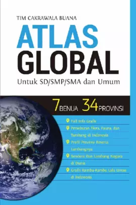 Sinopsis Buku: Buku *Atlas Global* ini merupakan karya yang dirancang untuk memudahkan pembaca dalam mempelajari dan memahami berbagai aspek geografis, baik di Indonesia maupun di seluruh dunia. Buku ini menyajikan informasi secara full info grafis, sehingga memperkaya pemahaman pembaca mengenai komponen peta, atlas, serta data fisik muka bumi. Buku ini terdiri dari berbagai bab yang menjelaskan secara rinci tentang wilayah Indonesia, termasuk provinsi-provinsi di Sumatera, Kalimantan, Sulawesi, Papua, Jawa, dan daerah lainnya. Selain itu, buku ini juga mencakup informasi tentang Benua Asia, Afrika, Eropa, Australia, dan Amerika, serta negara-negara di sekitar dunia. Informasi tentang mata angin, garis astronomis, garis lintang, dan garis bujur juga disajikan untuk memperkaya pengetahuan pembaca mengenai navigasi dan orientasi geografis. Selain itu, buku ini juga menyertakan data tentang flora, fauna, dan lambang negara di dunia, serta rambu-rambu lalu lintas di Indonesia. Buku ini sangat cocok untuk pembelajar SD, SMP, SMA, dan umum yang ingin memperluas wawasan geografis secara menyeluruh dan visual. Dengan penjelasan yang jelas dan disusun secara terstruktur, *Atlas Global* ini menjadi referensi yang bermanfaat bagi pembaca yang ingin mempelajari dunia secara lebih dalam.